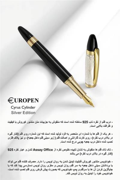 - درب قلم از نقره ناب 925 ساخته شده است که منقوش به جزییات متن منشور کوروش با کیفیت و ظرافت بالایی است.