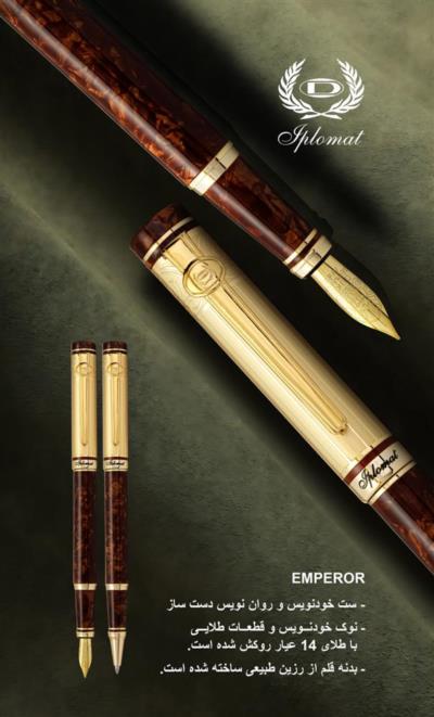 -ست خودنویس و روان نویس داخل جعبه چوبی نفیس بسته بندی شده است.