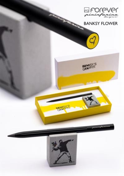 - مداد ماندگار با بدنه فلزی و نوک گرافیت قابل تعویض و در انتهای آن مزین به گرافیتی معروفی از بنکسی نقاش خیابانی معروف است.
